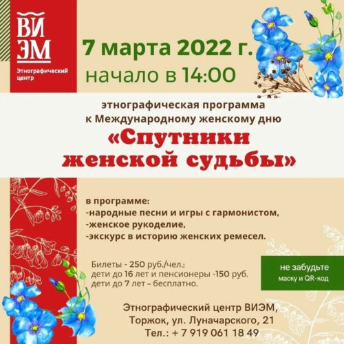 Афиша Этнографическая программа «Спутники женской судьбы» Этнографический центр 0+ 7 марта 2022 — 8 марта 2022