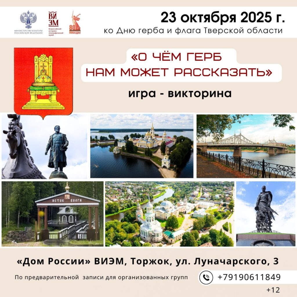 23 октября Дом России приглашает на познавательную игру-викторину «О чём герб нам может рассказать». Это командная и интеллектуальная игра. Для участия не нужны специальная подготовка или образование. Достаточно только хорошего настроения и желания вместе с друзьями открыть что-то новое.