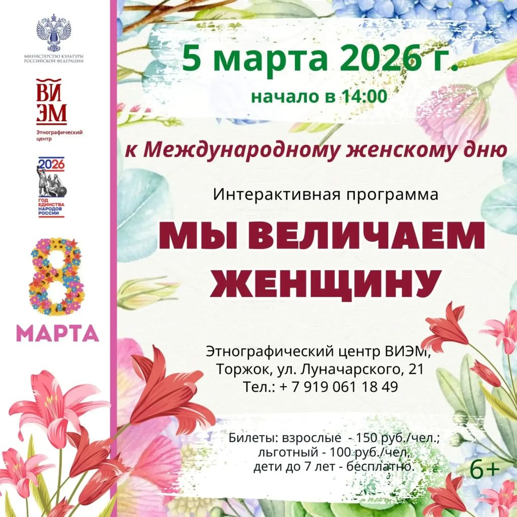 К Международному женскому дню в Этнографическом центре пройдет весенняя программа «Мы величаем женщину». Знаете ли вы, что издревле приход весны на Руси был окружен множеством традиций, обрядов и поверий. Как наши предки встречали тепло? Какие секреты и приметы хранили наши прабабушки? Как «величали» женщину в деревнях?