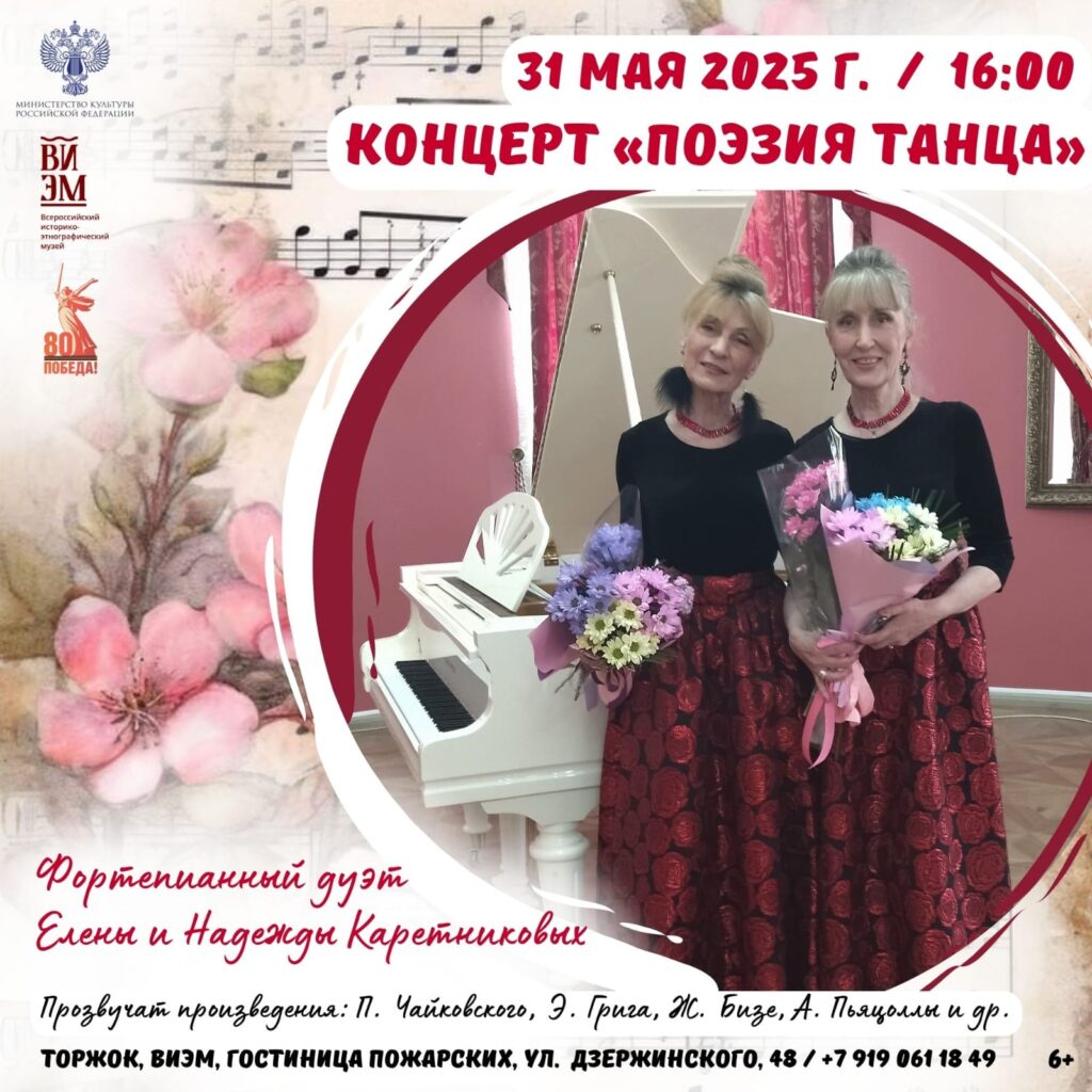 Всероссийский историко-этнографический музей приглашает вас 31 мая 2025 года в 16:00 в Гостиницу Пожарских на концерт «Поэзия танца»!