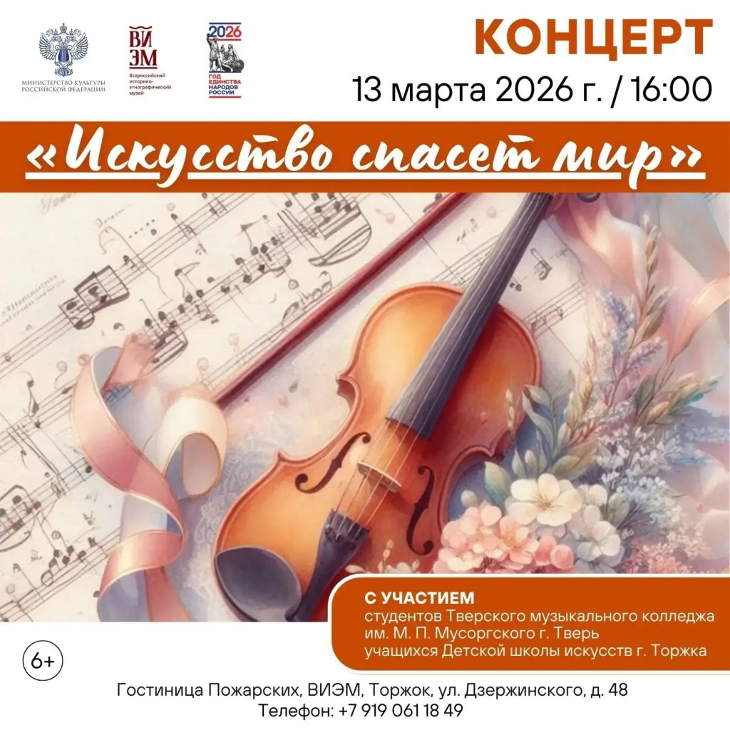 Есть ли сила, способная объединять сердца, дарить надежду и делать этот мир добрее? Конечно, это искусство. 13 марта Всероссийский историко-этнографический музей приглашает вас в Гостиницу Пожарских на концерт классической музыки «Искусство спасет мир».