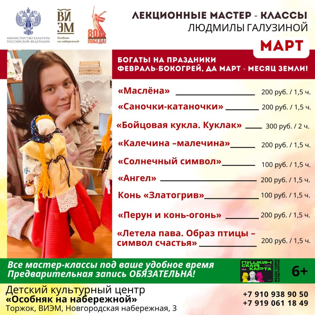 Афиша Лекционные мастер-классы в марте Детский культурный центр «Особняк на набережной» 0+ 1 марта 2025