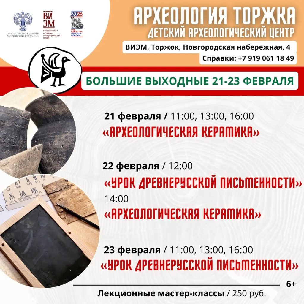 Большие выходные — прекрасный повод открыть для себя историю по-новому! С 21 по 23 февраля детский археологический центр «БАЗА» приглашает новоторов и гостей города на увлекательные мастер-классы.