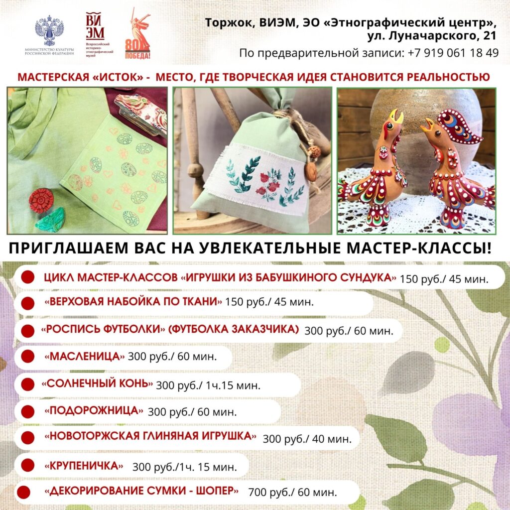 Мастер-классы проводятся по предварительной записи: +7(919)061-18-49.