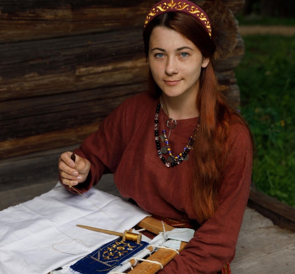 На мастер-классе золотошвейки Дарьи Кукшиной посетители познакомятся с особенностями технологии новоторжского золотного шитья, увидят разбор и демонстрацию основного шва «кованый на проём» по карте на примере вышивки головного убора из музея А. С. Пушкина (г. Торжок), изучат отличия швов «гусем», «бабий», «корзиночка» и узорных прикрепов, сделают пробу вышивки «кованым швом» по прямой полосе.
