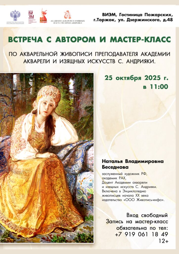 Всероссийский историко-этнографический музей приглашает 25 октября в 11:00 на встречу с художником Натальей Владимировной Беседновой, автором выставки, которая проходит в Гостинице Пожарских.