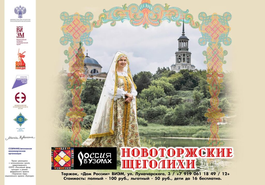В экспозиционном пространстве представлены 14 новоторжских костюмов, созданных по акварельным рисункам Солнцева. Исторической отсылкой и образцом, использованным в работе над созданием коллекции, стали уникальные экспонаты – старинные театральные костюмы, созданные в XIX веке с новоторжских оригиналов, любезно предоставленные Государственным Академическим Малым театром России.