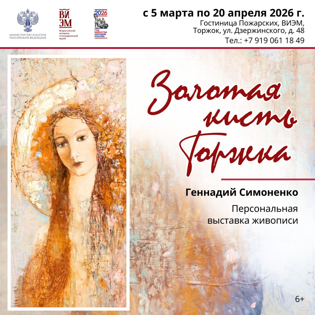 5 марта 2026 года начнет работу персональная выставка живописца и графика, члена Союза художников России Геннадия Симоненко. Экспозиция получила символичное название — «Золотая кисть Торжка».