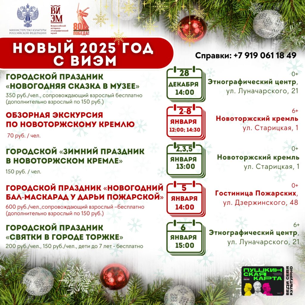 В преддверии самого волшебного праздника Всероссийский историко-этнографический музей подготовил насыщенную программу на январские дни и ждёт гостей со всех волостей в старинный Торжок!