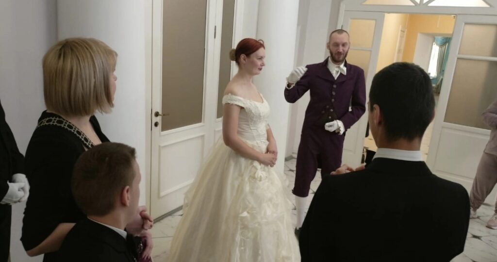 В Гостинице Пожарских дети окунулись в атмосферу XIX века: игры, танцы и живая музыка в замечательном исполнении детского ансамбля скрипачей «Надежда».