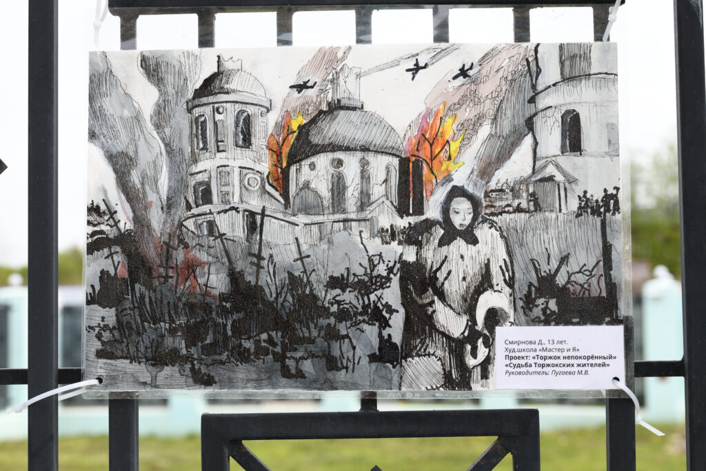 В «Ночь музеев» подвели итоги художественно-просветительского проекта «Торжок непокорённый». Он был организован Всероссийским историко-этнографическим музеем при поддержке администрации города Торжка в год 80-летия Победы, и объединил подростков, увлеченных живописью и неравнодушных к поиску исторической правды. В течение нескольких недель дети изучали исторические фотографии и архивные материалы, свидетельства военных лет, чтобы на их основе создать картины, рассказывающие о том, как выживал их родной город под бомбами фашистов, и о героизме его жителей. В проекте участвовали две мастерские: Детская школа искусств города Торжка и художественная школа Марины Пугаевой » Мастер и Я».