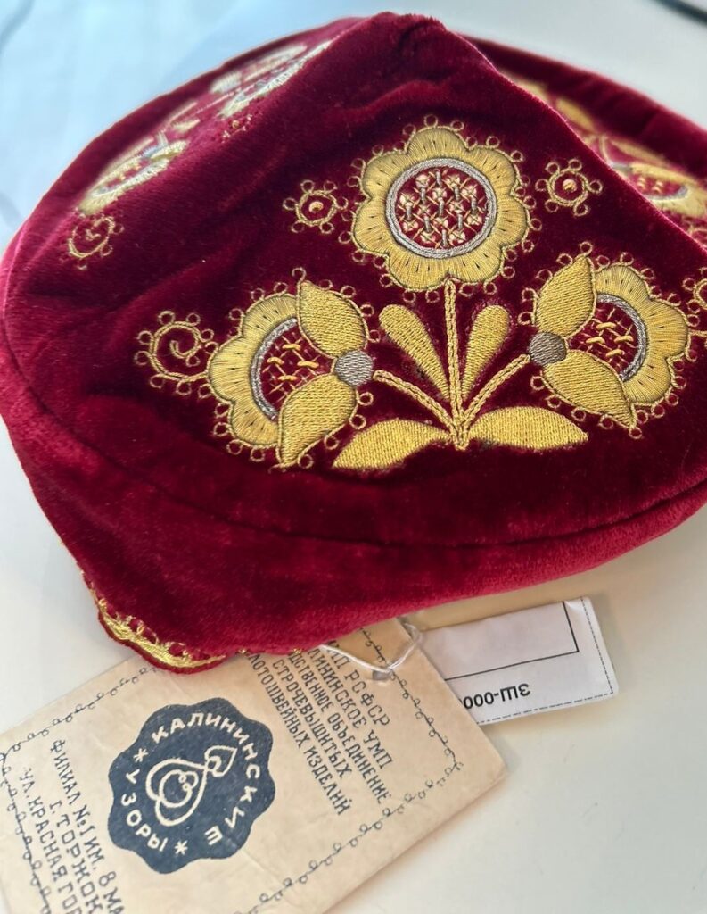 Во время своего выступления Ирина Владимировна показала коллегам ценный экспонат 1977 года, выполненный в традиционной технике новоторжского золотного шитья, – тюбетейку. Её специально предоставили партнеры Всероссийского историко-этнографического музея ОАО «Торжокские Золотошвеи». В советское время такие тюбетейки Калининская фабрика строчевышитых золотошвейных изделий изготавливала для стран нынешнего СНГ.