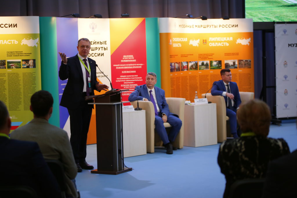 6-7 декабря 2021 года в Смоленске в КВЦ им. Тенишевых стартовал цикл проектно-аналитических и презентационных мероприятий «Музейные маршруты России». Модератором пленарного заседания выступил директор Департамента музеев и внешних связей Министерства культуры Российской Федерации Александр Воронко.