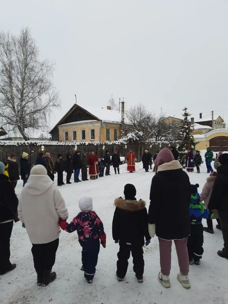 Гости узнали о древних корнях Святок, их сакральном и бытовом значении, а также о специфических обычаях и обрядах жителей Торжка и его окрестностей, разучили и дружно исполнили настоящие народные колядки – обрядовые песни с пожеланиями добра и благополучия, которые раньше звучали под окнами каждого дома. Конечно, приняли участие в шуточных русских народных играх и забавах, которые были неотъемлемой частью святочных гуляний, создавая всеобщее ощущение радости и единства.