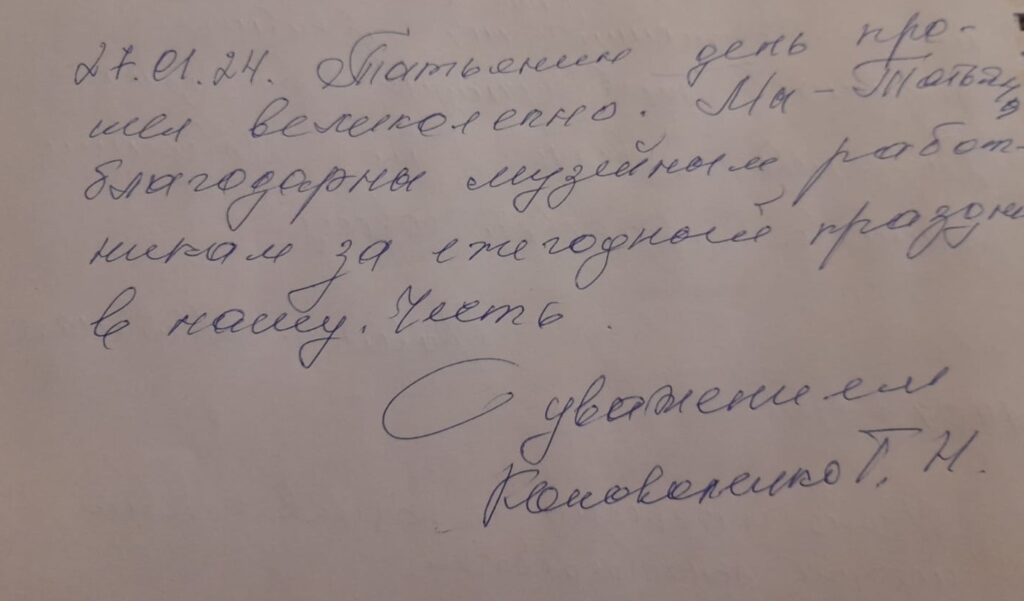 Благодарим наших гостей за такие теплые слова благодарности музейным сотрудникам Татьяне Чупровой и Кристине Быковой за проведение интерактивной программы!