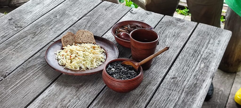 Впрочем, мешки и секрет вскоре раскрыли. Там была дичь (вальдшнепы), чечевица, пшено, ячменная крупа, а также репа, щавель и базилик. Достаточно, чтобы приготовить блюда, которым питались наши предки в 14-15 веке. Кстати, в прошлом году набор продуктов был немного другой, в него входили мед, груши, орехи…