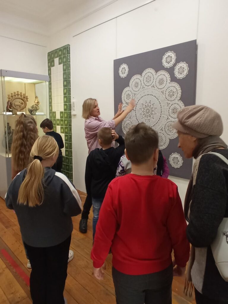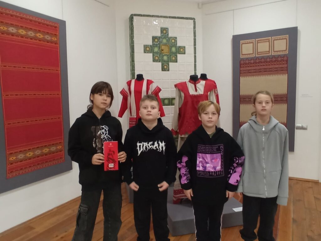 Вчера, 1 ноября, дети из пришкольного осеннего лагеря «Радуга» при МБОУ «Центр образования» посетили выставочный этнографический проект «Россия в узорах: новоторжские щеголихи»* в Гостинице Пожарских.