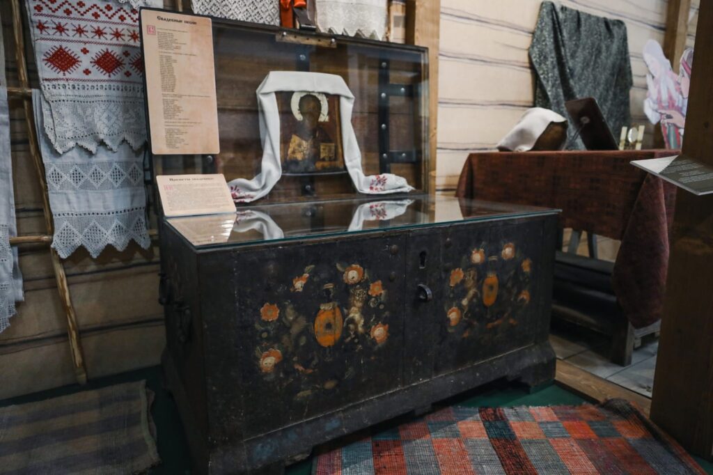 На постоянной экспозиции «Русь живая» находится интересный фондовый экспонат, предмет русского быта – старинный сундук крестьян Финогеновых из деревни Маркашино Торжокского района.