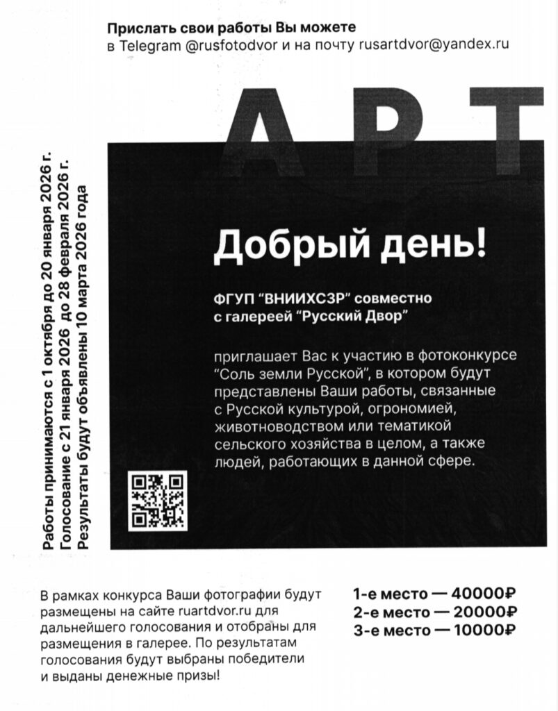 Отправьте работу менеджеру в ТГ @rusdvormanager или на почту rusartdvor@yandex.ru, а также следите за обновлениями в ТГ канале @rusartdvor.