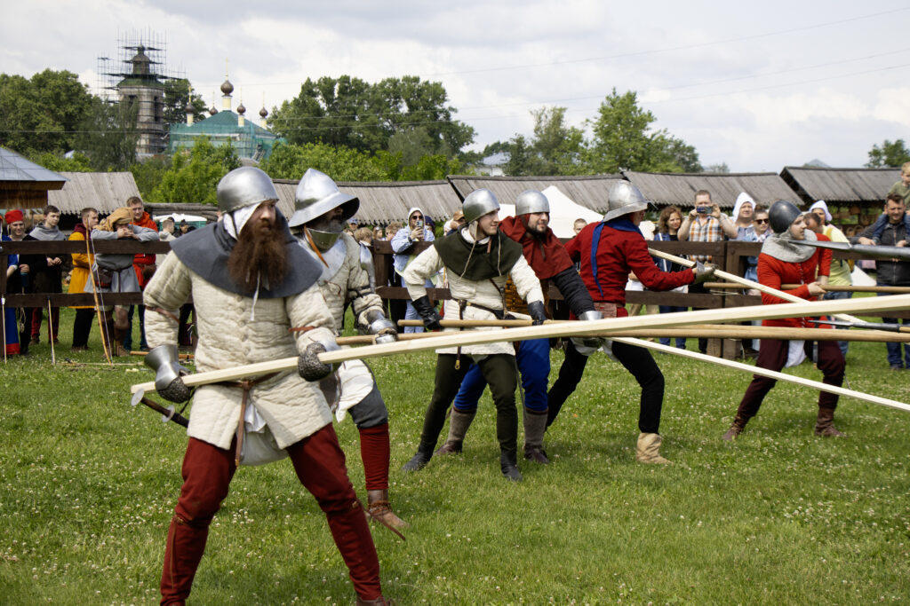 - Маневры пехотинцев 14-15 веков — это максимально приближенный к историческим реалиями бой. На самом деле не так уж много людей в средневековье носили доспехи и могли позволить себе купить коня. Большинство участников великих сражений — крестьяне, пехота с пиками и лучники. Эти состязания не так травмоопасны, как бугурт, но не менее зрелищны, — рассказывает Сергей Курков, специалист по проектам Всероссийского историко-этнографического музея.
