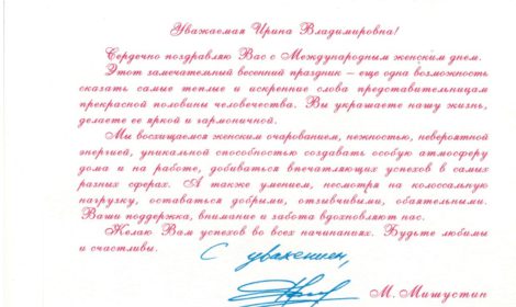 Поздравление председателя правительства РФ Михаила Мишустина с днём 8 Марта
