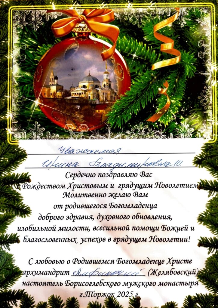 Новости Поздравление с Рождеством Христовым от настоятеля Борисоглебского мужского монастыря 6.01.2025