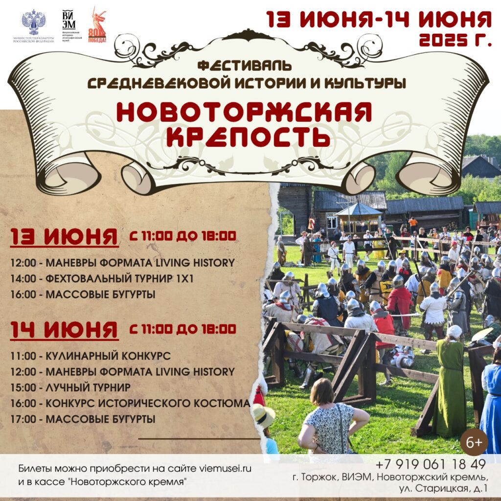 Всероссийский историко-этнографический музей приглашает новоторов и гостей города на II Фестиваль средневековой истории и культуры «НОВОТОРЖСКАЯ КРЕПОСТЬ», который состоится с 13 по 14 июня 2025 года в Новоторжском кремле.