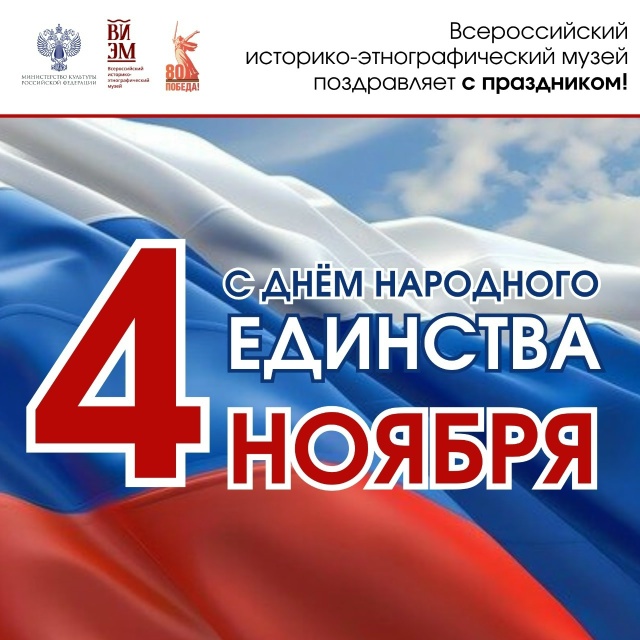 Коллектив Всероссийского историко-этнографического музея поздравляет с важнейшим государственным праздником – Днем народного единства!