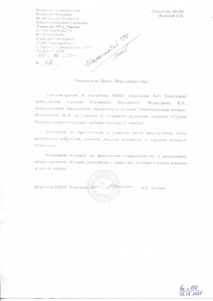 В рамках реализации программы патриотического воспитания и популяризации русского искусства 27 ноября в музее при гимназии № 7 прошло открытое занятие «Студия Грекова: вчера и сегодня».