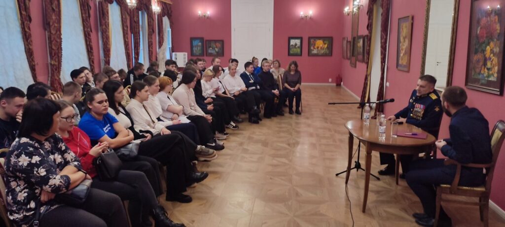 Всероссийский историко-этнографический музей совместно с 344-м Государственным ордена Суворова Центром боевого применения и переучивания летного состава Министерства обороны РФ продолжают проект «Встреча с героем». Гостиница Пожарских не в первый раз становится местом, где школьники и студенты в неформальной обстановке общаются с легендарными российскими офицерами. Теперь на вопросы подростков ответил подполковник Алексей Глебкин: начальник отделения старший инструктор-летчик (исследователь) 344-го Государственного ордена Суворова Центра боевого применения и переучивания летного состава Министерства обороны РФ. В его послужном списке – командировки в Таджикистан, в Чечню, на Донбасс. И множество наград. В их числе – три ордена Мужества. Два за чеченскую кампанию, один за участие в спецоперации.