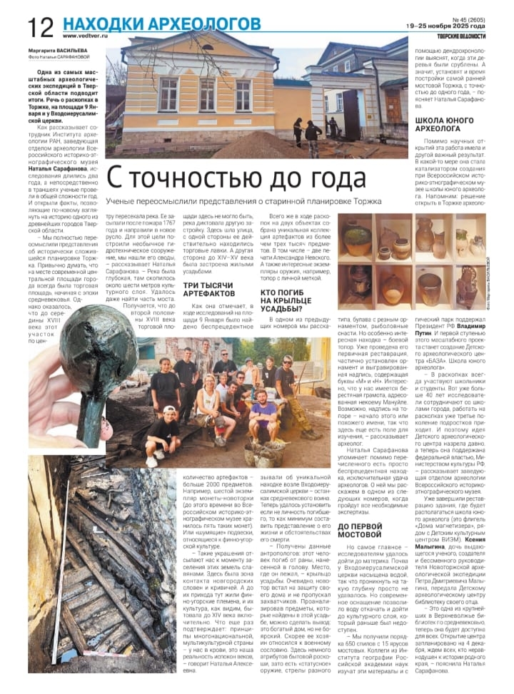 «Мы будем знать точно, когда были спилены эти деревья, как они росли, с какого периода началось строительство мостовых в Торжке, и когда возник Торжок – в X или XI веке. Этот вопрос обсуждается до сих пор в научных кругах», — добавила эксперт.