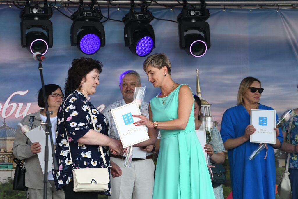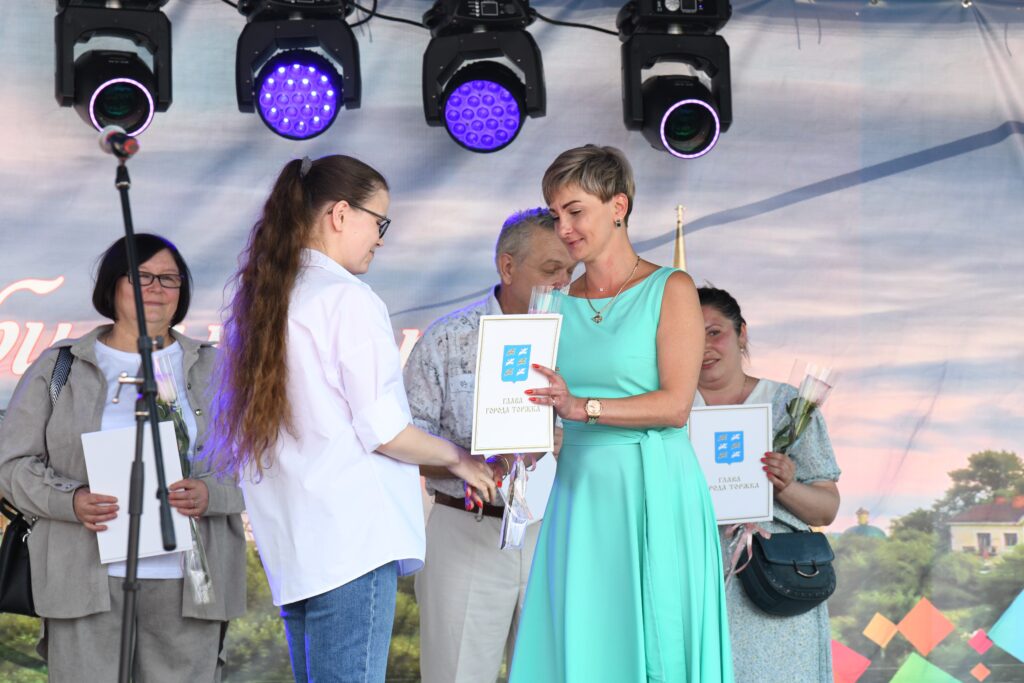 По традиции в День города, 7 июня 2025 года, у Городского Дома культуры состоялось торжественное награждение новоторов. Врио Главы города Торжка А. С. Борунова вручила благодарственные письма и почётные грамоты тем, кто вносит неоценимый вклад в укрепление экономического, социального и культурного потенциала Верхневолжья.