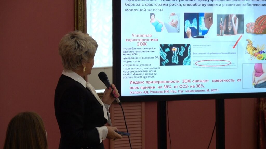 Специально приглашенным лектором из Москвы стала Президент «Российской Ассоциации Маммологов», доктор медицинских наук, профессор, заслуженный деятель науки России и руководитель Национального центра онкологии репродуктивных органов Московского научно-исследовательского онкологического института им. П. А. Герцена Надежда Рожкова, которая рассказала о последних достижениях в отечественной и мировой медицине.