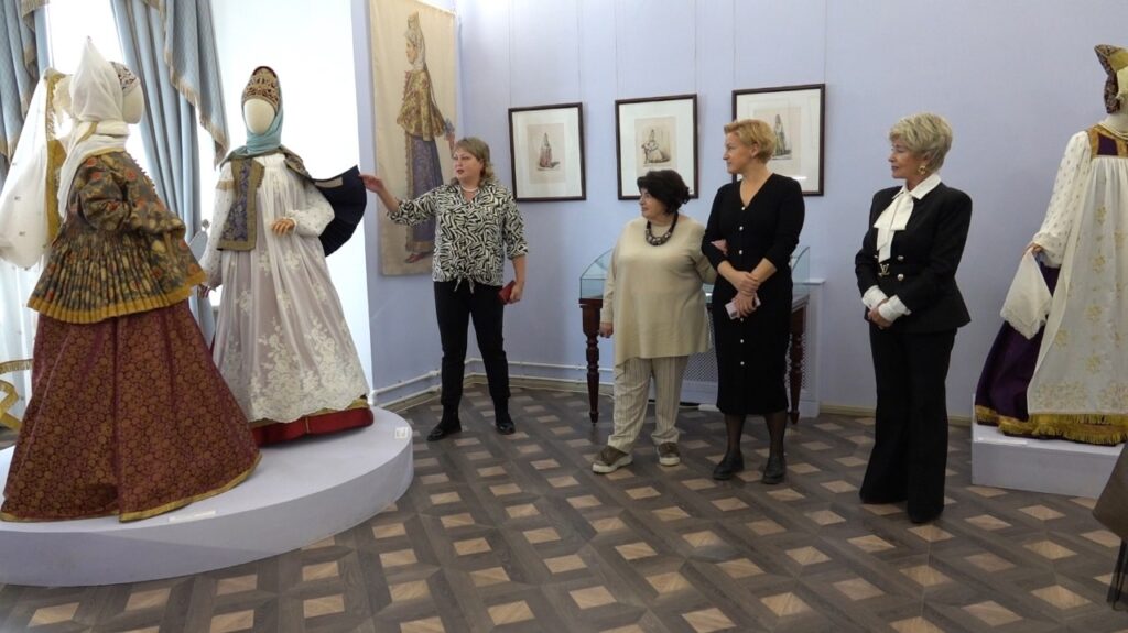 В завершение зав. экспозиционным отделом ВИЭМ О. В. Жигалова провела для участников научно-практической конференции экскурсию по выставочному этнографическому проекту «Россия в узорах: новоторжские щеголихи».