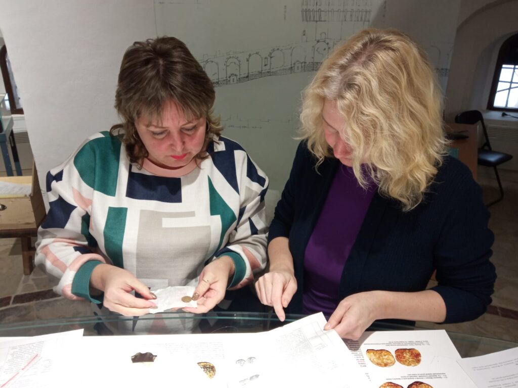 Научный сотрудник Отдела фондов ВИЭМ О. В. Жигалова и и. о. главного хранителя Государственного музея «Смоленская крепость» О. В. Корнилова