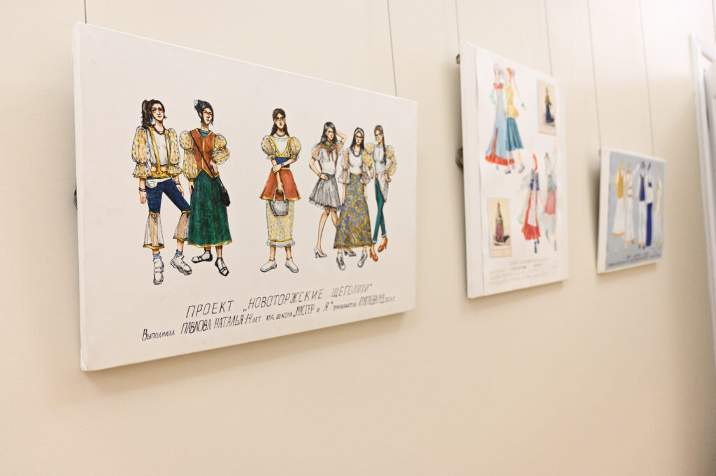 Главная задача программы «Россия в узорах» — перенести старинные традиции в современность и в будущее. В рамках проекта поучаствовать в поиске путей для этого предложили начинающим художникам. Воспитанники школы Марины Пугаевой «Мастер и я» представили вниманию зрителей эскизы молодежной коллекции, которую можно создать по мотивам старинного новоторжского костюма и носить уже сегодня. Мария Рыбакова и ее команда готовы эту коллекцию сшить.