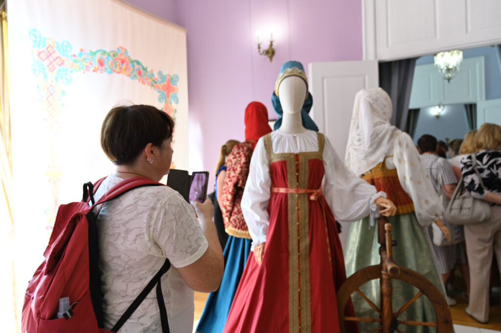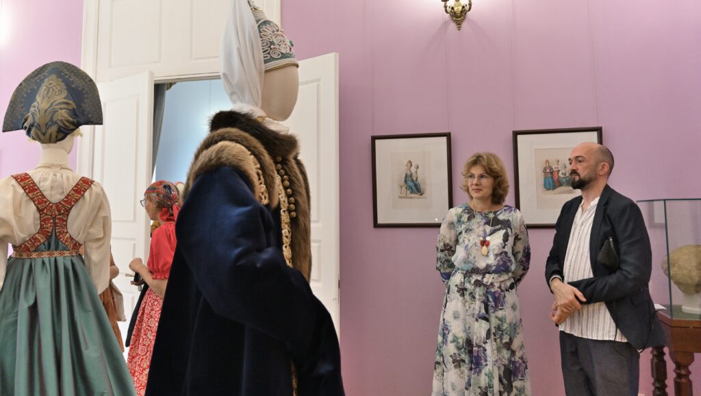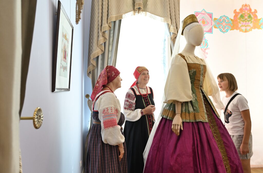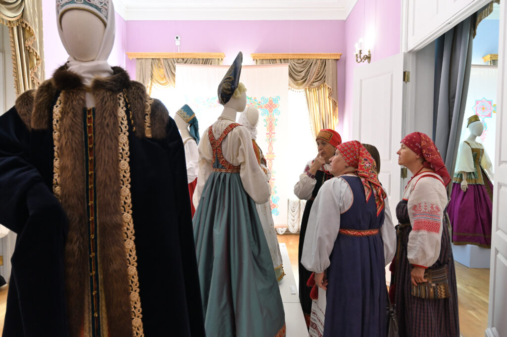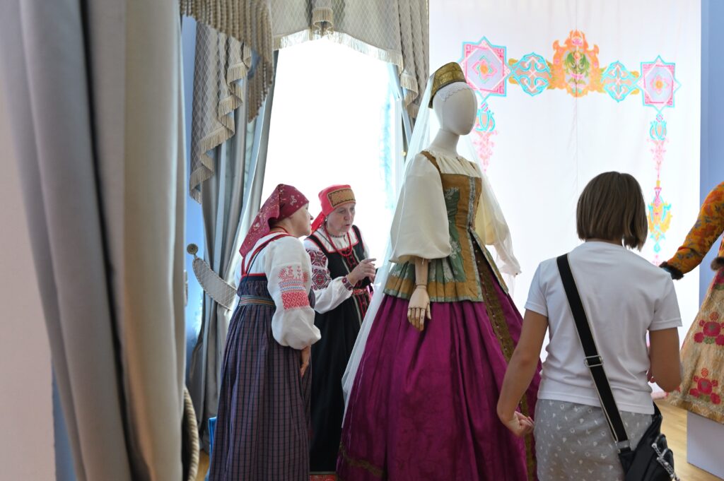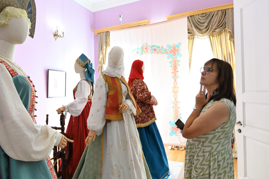 — Сегодня — пик развития программы Россия в узорах, переход на новый этап межмузейного сотрудничества, когда, помимо музеев, привлекаются и мастера, и коллекционеры, и начинающие художники. РЭМ обладает уникальной коллекцией по этнографии Тверской губернии. Она насчитывает более восьми с половиной тысяч предметов, включая и фотоснимки. Один из уникальных памятников — головной убор первой половины 19 века — кичка, расшитая жемчугом и также расшитый жемчугом свивальник конца 18 века. Это, возможно, самые ранние предметы из Тверской губернии, известные в музеях России. Наше собрание содержит уникальный ресурс для реконструкции — множество произведений декора, прикладного искусства, образцов вышивки, ткачества. Не случайно к нам обратились, как к первоисточнику. Для нас всегда большая радость работать с ВИЭМ, в таких проектах органично сочетаются научные изыскания, опыт экспертов и мастерство современных художников и дизайнеров. Сегодня мы видим не просто реконструкцию одежды — это реконструкция представления о красоте, тайн мастерства, дань уважения кропотливому труду, благодаря которому наши предки создавали уникальные вещи. Вместе с посетителями Гостиницы Пожарских, будем размышлять над вопросом, что такое красота, как в ней отражается достоинство женщины и её семьи, почему наши предки столько ресурсов тратили на украшение наряда жены и матери, и как эти традиции сочетаются с современными представлениями , — комментирует директор Российского этнографического музея Юлия Купина.