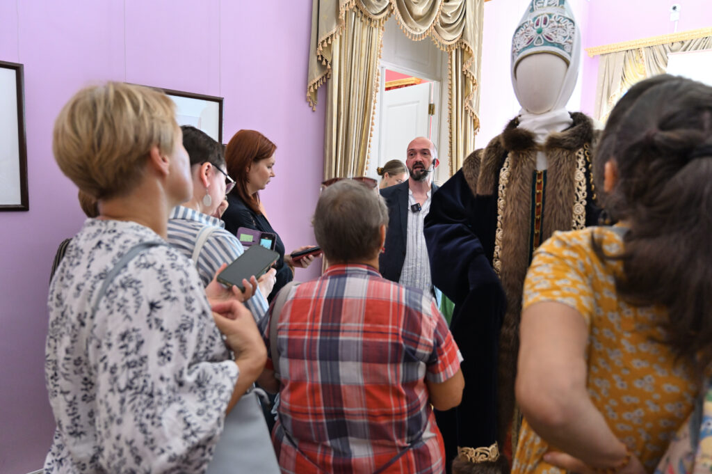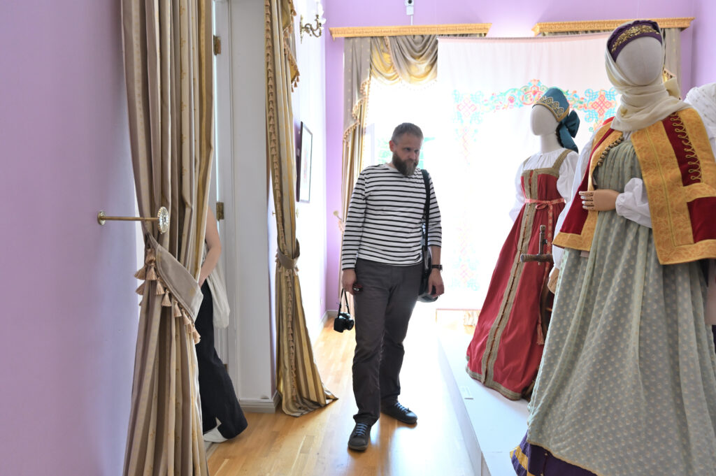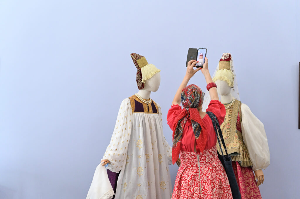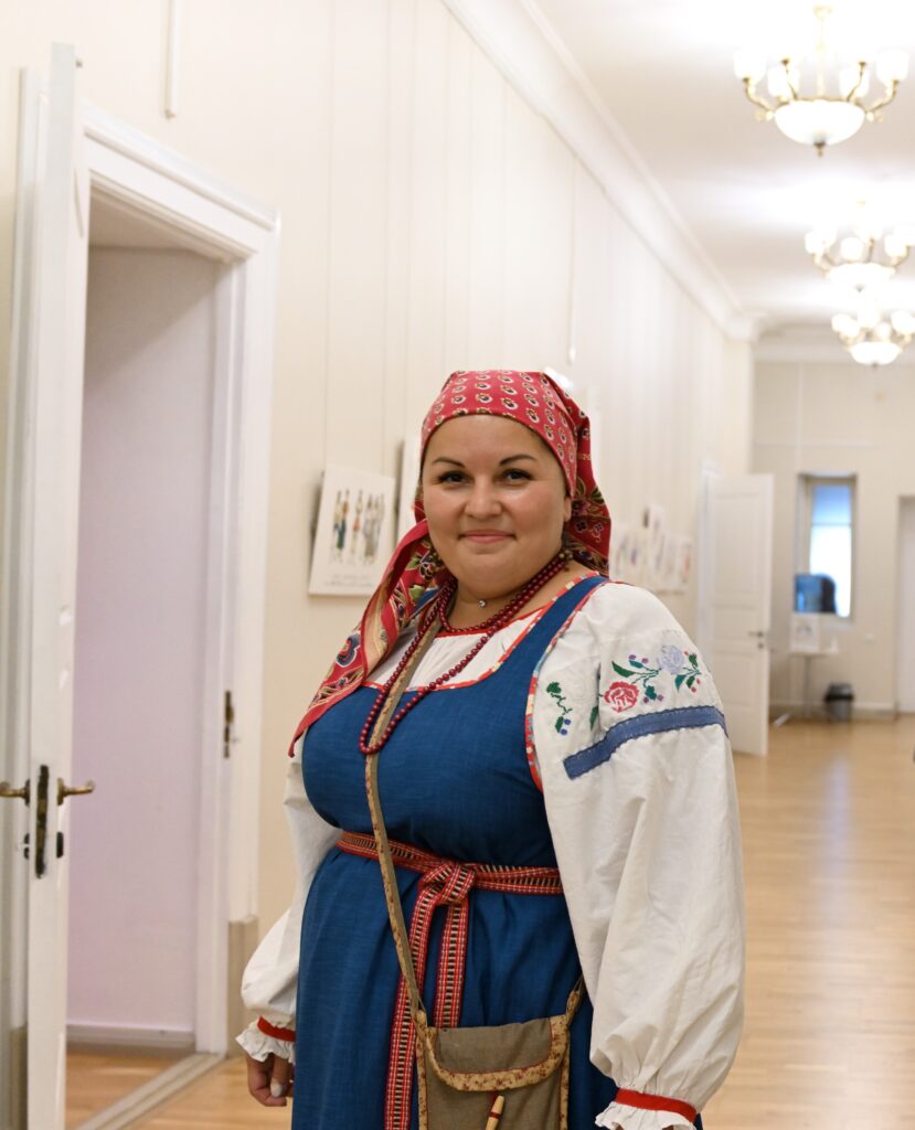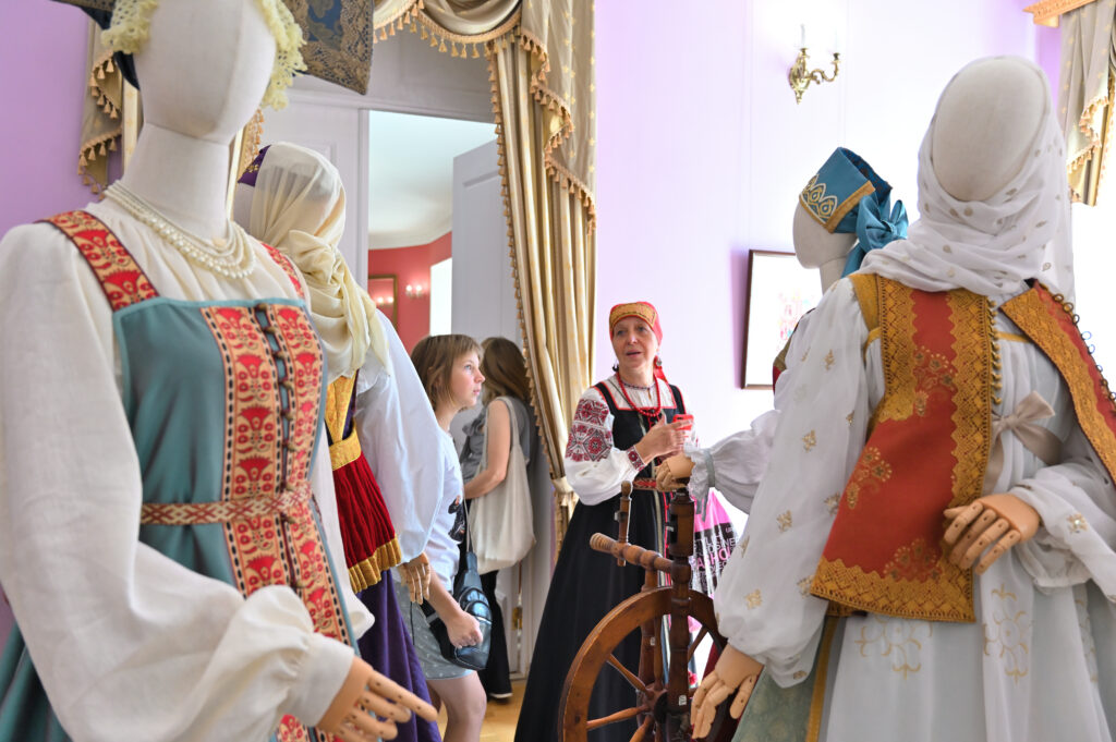 — Сегодня — пик развития программы Россия в узорах, переход на новый этап межмузейного сотрудничества, когда, помимо музеев, привлекаются и мастера, и коллекционеры, и начинающие художники. РЭМ обладает уникальной коллекцией по этнографии Тверской губернии. Она насчитывает более восьми с половиной тысяч предметов, включая и фотоснимки. Один из уникальных памятников — головной убор первой половины 19 века — кичка, расшитая жемчугом и также расшитый жемчугом свивальник конца 18 века. Это, возможно, самые ранние предметы из Тверской губернии, известные в музеях России. Наше собрание содержит уникальный ресурс для реконструкции — множество произведений декора, прикладного искусства, образцов вышивки, ткачества. Не случайно к нам обратились, как к первоисточнику. Для нас всегда большая радость работать с ВИЭМ, в таких проектах органично сочетаются научные изыскания, опыт экспертов и мастерство современных художников и дизайнеров. Сегодня мы видим не просто реконструкцию одежды — это реконструкция представления о красоте, тайн мастерства, дань уважения кропотливому труду, благодаря которому наши предки создавали уникальные вещи. Вместе с посетителями Гостиницы Пожарских, будем размышлять над вопросом, что такое красота, как в ней отражается достоинство женщины и её семьи, почему наши предки столько ресурсов тратили на украшение наряда жены и матери, и как эти традиции сочетаются с современными представлениями , — комментирует директор Российского этнографического музея Юлия Купина.
