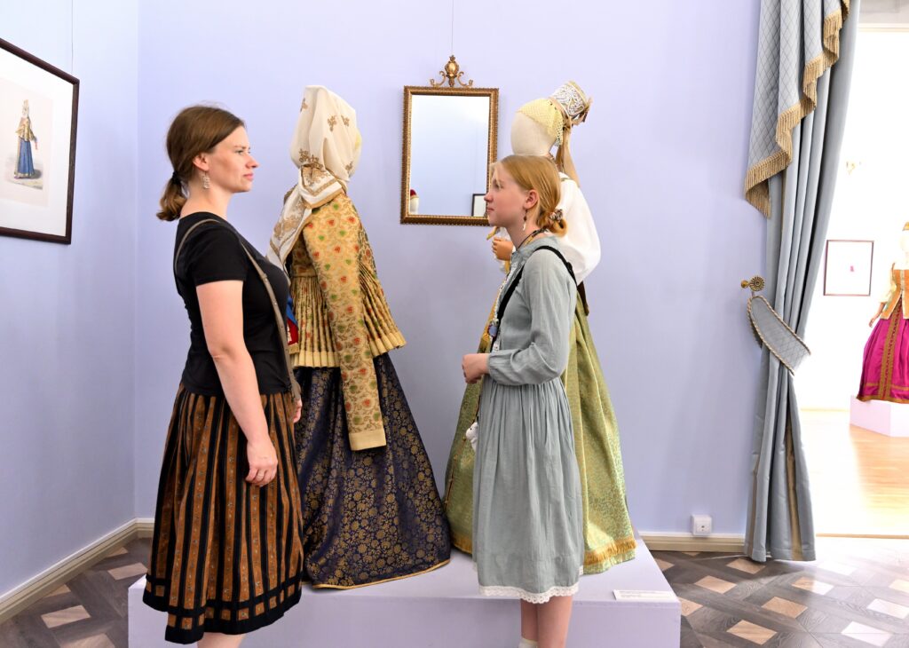 Посетителями экспозиции представлены акварели Фёдора Солнцева , а также скрупулезно воспроизведенные по ним исторические наряды. Они созданы золотыми руками дизайнера Марии Рыбаковой и её команды.