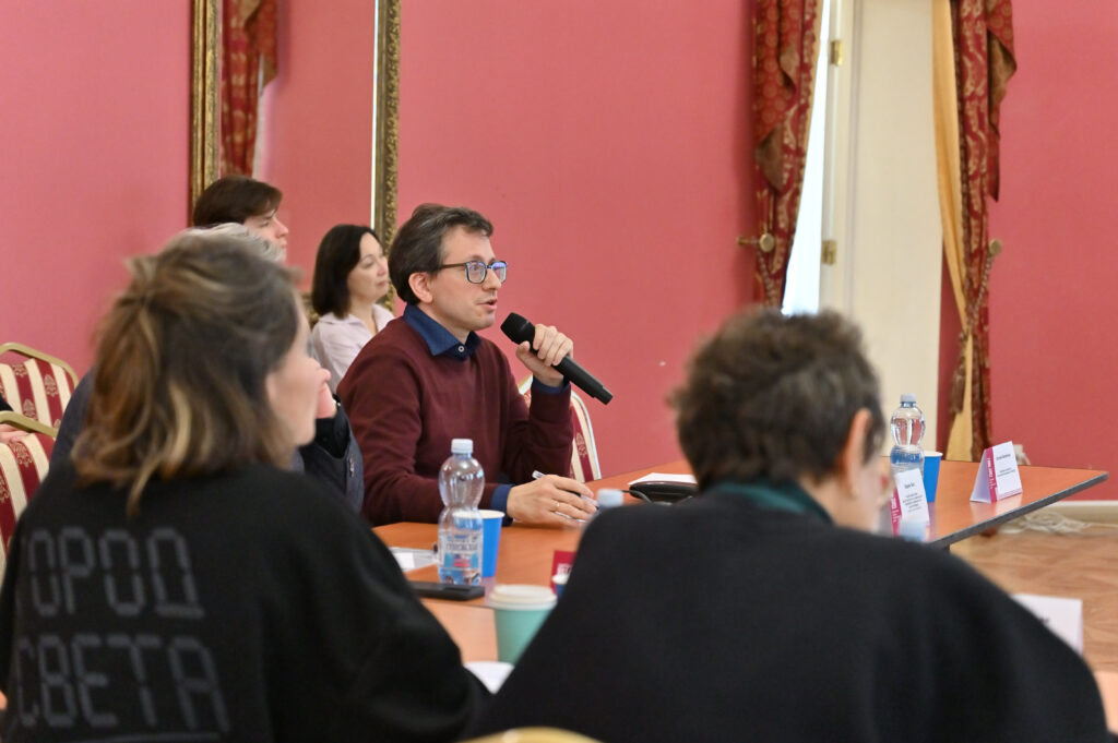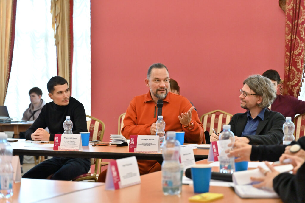 Собравшиеся обсудили примеры взаимодействия архитектурных музеев и городской среды. Архитектурный критик Владимир Фролов упомянул: изначально наполнением архитектурных музеев были книги и гравюры. Такой музей должен быть, в первую очередь, средоточием знаний и образов.