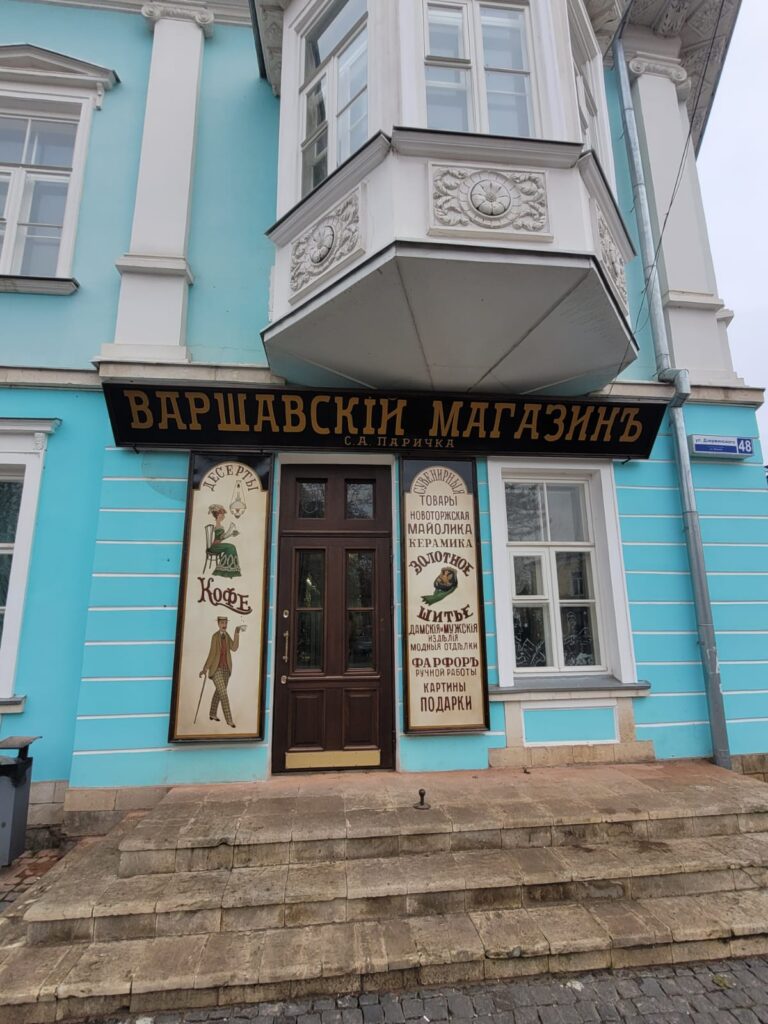 Стоит отметить, что Варшавский магазин располагается в Гостинице Пожарских –легендарном здании, где проходят значимые культурные мероприятия регионального и федерального уровня. И сам магазин является частью истории города, он начал работу в 1900 году. Вывеска, которую установили на фасаде, максимально воспроизводит ту, что украшала магазин в начале XX века.