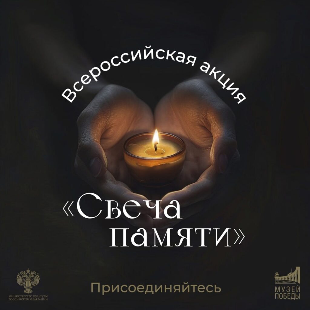 В 2024 году ежегодная Всероссийская акция «Свеча Памяти» проходит с 10 по 22 июня. Пока мы помним о ветеранах, их подвиги живы! Зажечь свою Свечу Памяти можно на платформе деньпамяти.рф . Также там можно посмотреть видеоинтервью ветеранов Великой Отечественной войны – более 60 роликов с воспоминаниями о войне от первого лица: фронтовиков, блокадников, тружеников тыла, узников концлагерей – бесценное наследие, которое благотворительный фонд «Память поколений» собирал по крупицам по всей России.