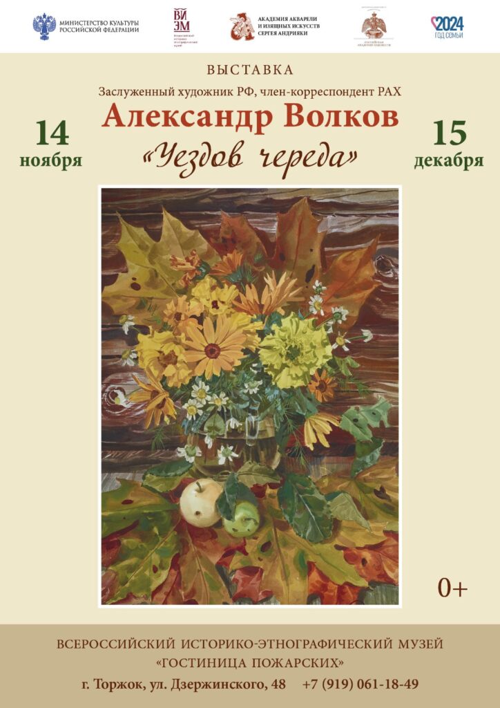 14 ноября 2024 года в 14:00 в Гостинице Пожарских откроется выставка «Уездов череда», где будут представлены работы Александра Волкова – заслуженного художника РФ, члена-корреспондента Российской академии художеств, доцента Академии акварели и изящных искусств Сергея Андрияки.