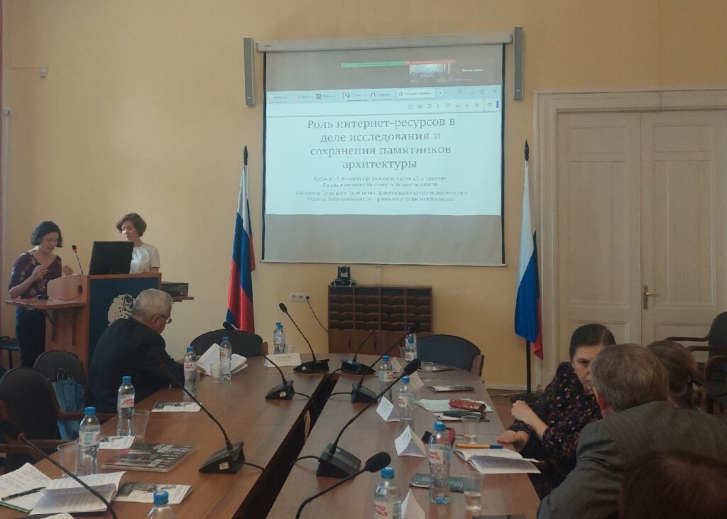 Елизавета Рысенкова и Елизавета Губанова, научный сотрудник Государственного Института Искусствознания, выступили с докладом «Роль интернет-ресурсов в деле исследования и сохранения памятников архитектуры» в секции «Музейно-выставочная деятельность и актуальные вопросы сохранения культурного наследия России».