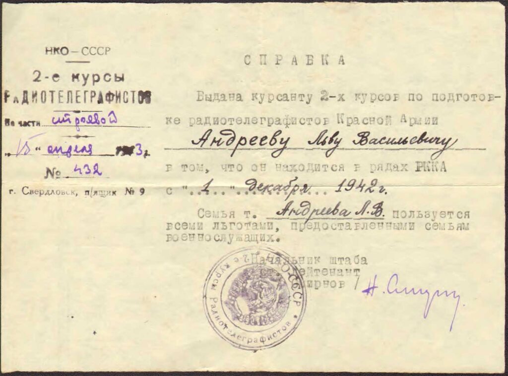 Дневник фронтовой Л. В. Андреева «Карманный дневничок» (1942-1945).