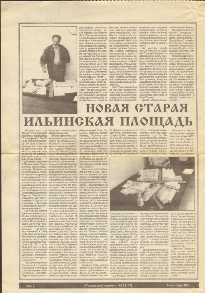 Статья «Новая старая Ильинская площадь» из газеты «Торжокская неделя» №36 (147) от 5 сентября 2001 г.