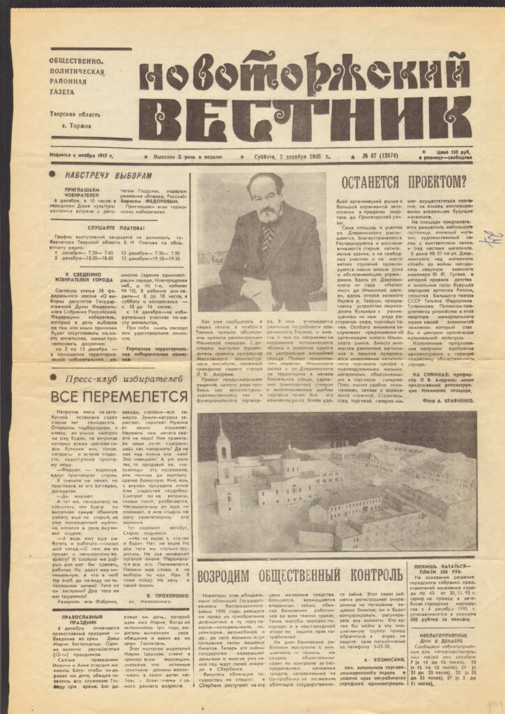 Статья «Останется проектом?» из газеты «Новоторжский вестник» №97 (12974) от 2 декабря 1995 г.