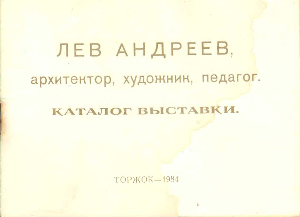 Каталог выставки работ профессора МАРХИ Л.В.Андреева: К 60-летию со дня рождения: Архитектура, живопись, графика/ МАРХИ, исполком горсовета, Торжок. педучилище. Торжок, 1984.