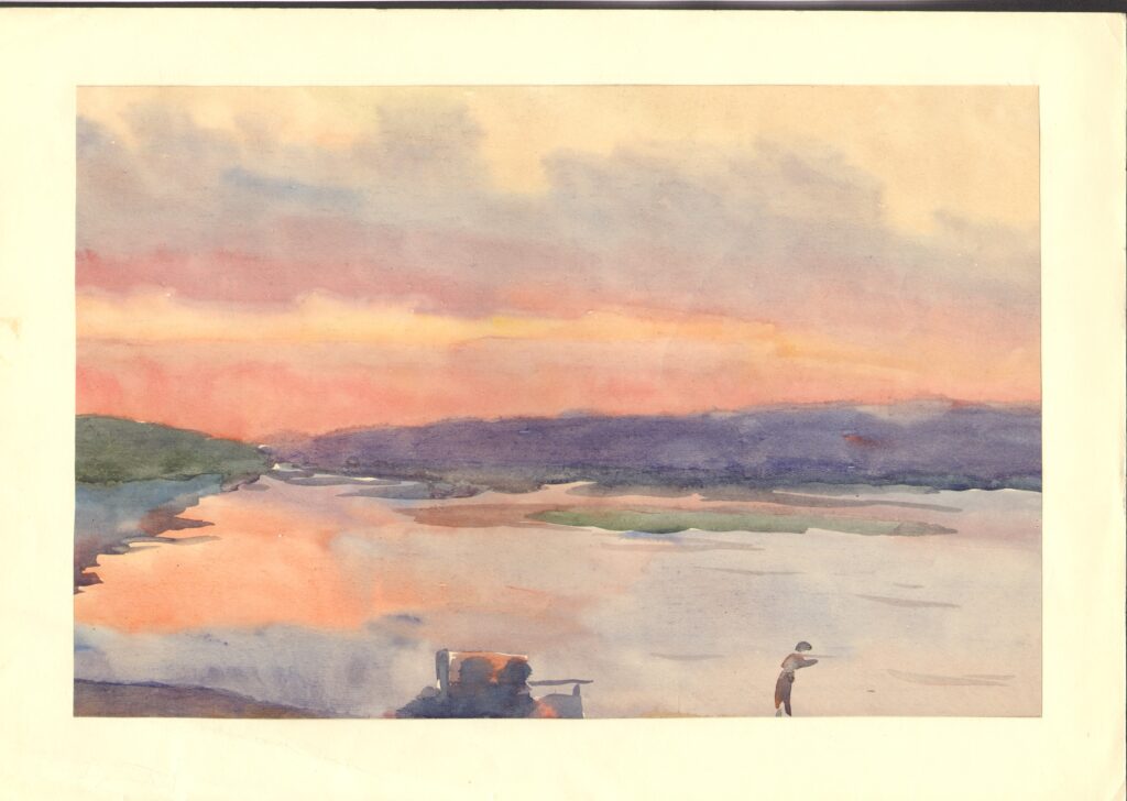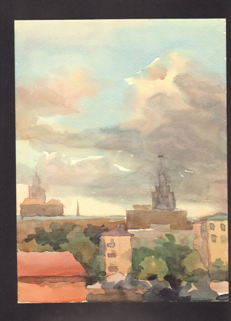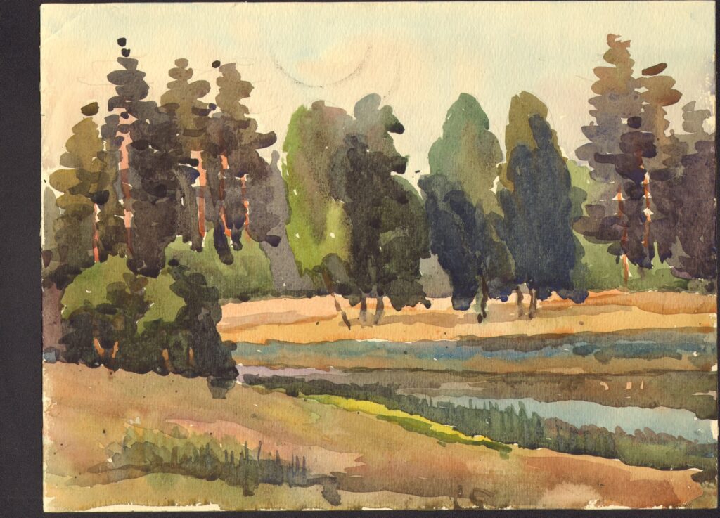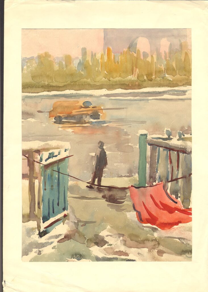 Акварель. Л.В. Андреев. «Вечерняя прогулка. Митино»