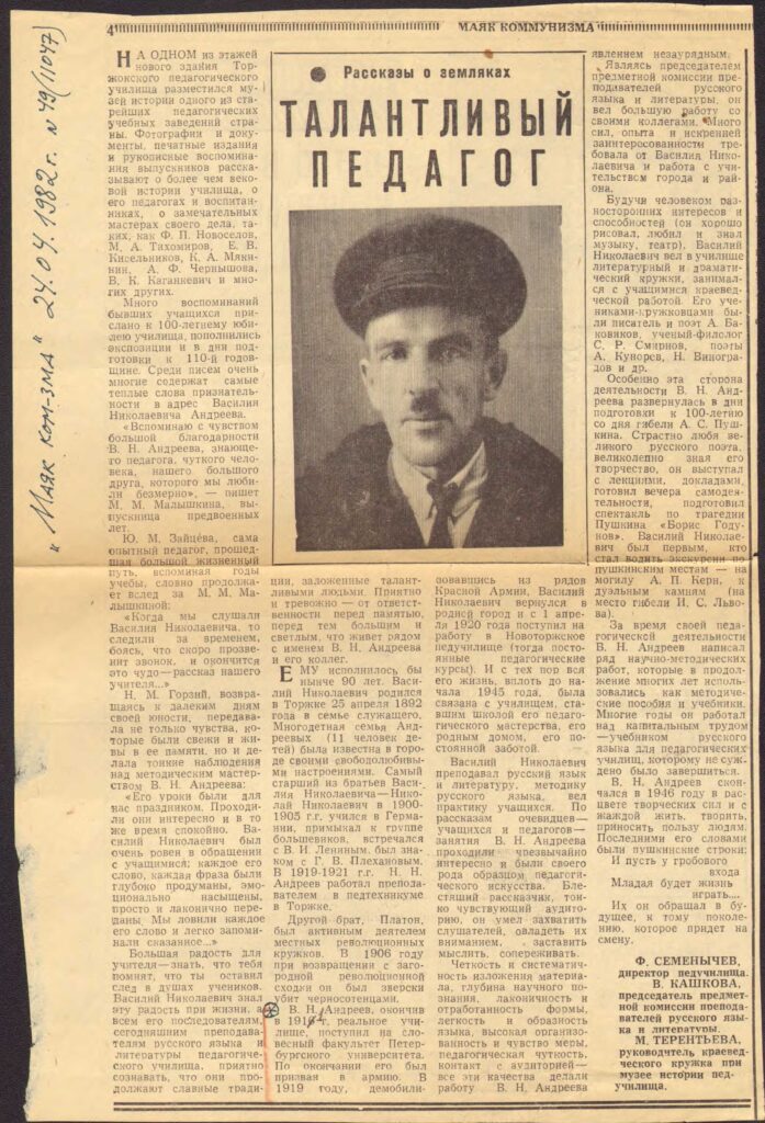 Всероссийский историко-этнографический музей 100-летию Л. В. Андреева (11 июня 2024 г.) посвящает виртуальную выставку. В её содержании основной акцент сделан на сюжетах, связанных с участием Л. В. Андреева в общественной жизни Торжка, немаловажными остаются биографическое повествование и отражение города в творчестве Андреева.